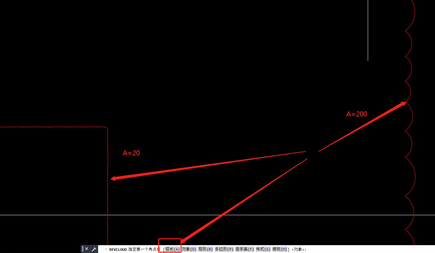 CAD云线怎么调整大小?点击,云线,里面有弧长,设置一下,就可以了,试几下,